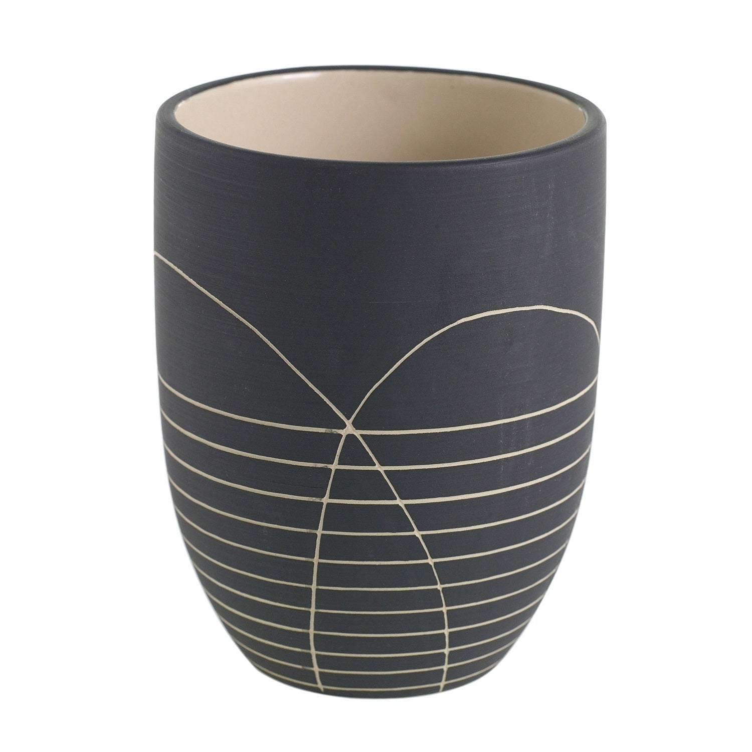 Material is ceramic. Does not contain drainage holes.
